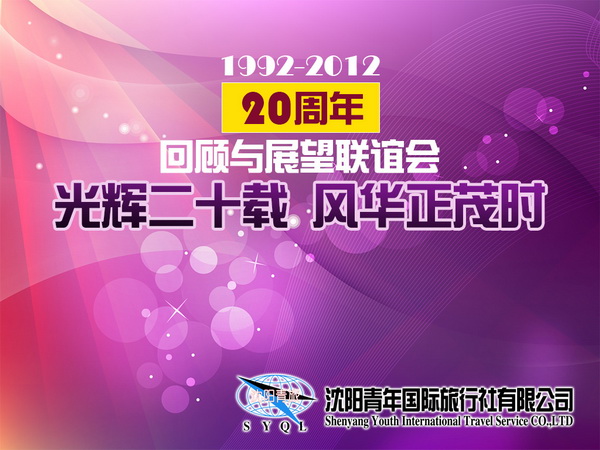 2013年3月12日,“光輝二十載·風華正茂時”沈陽青年國際旅行社成立二十周年回顧與展望聯誼會在沈陽北約克維景國際大酒店7樓宴會廳隆重舉行。 社會各界領導、旅游行業同仁到會慶祝。