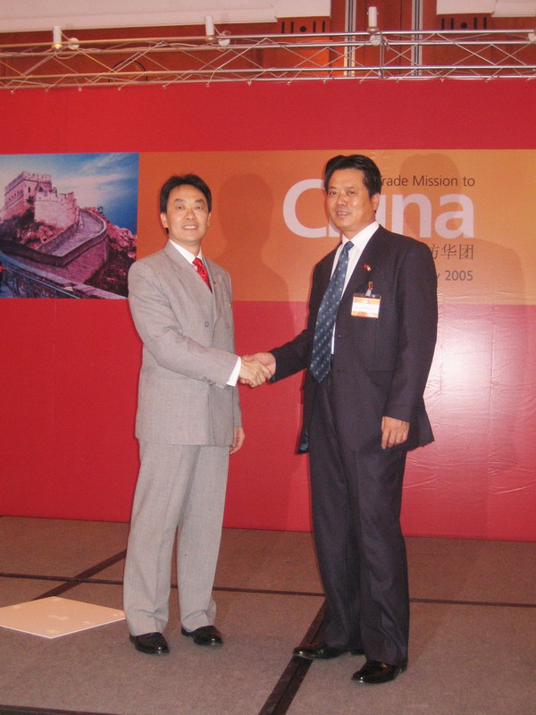 2005年1月21日沈陽青年國際旅行社有限公司董事長倪琛善與愛爾蘭UCD大學領導余曉晴在上海四季酒店會見。