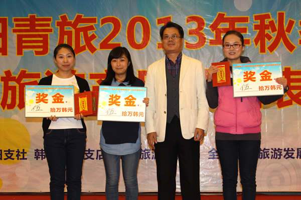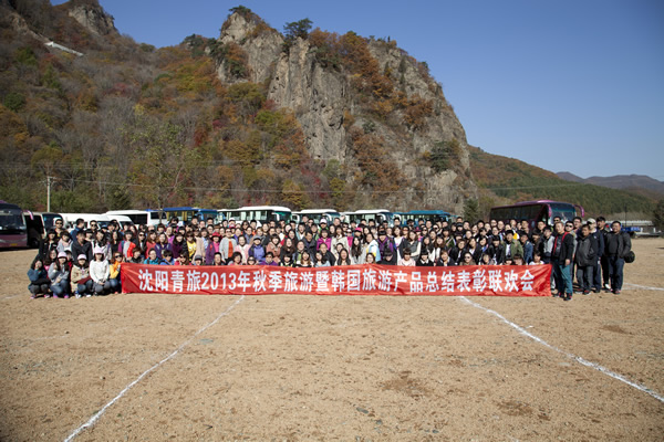 2013年10月12日-13日,沈陽青旅2013年秋季旅游暨韓國旅游產品總結表彰聯歡會在本溪關門山、同泉溫泉度假村舉行。韓國旅游發展局社長樸正夏、韓亞航空支店長金珍、韓國欣欣旅行社總經理金龍渙、韓國新羅免稅店所長金東元、韓國樂天免稅店劉康妮等韓國各界領導、同業及友人到會同慶。