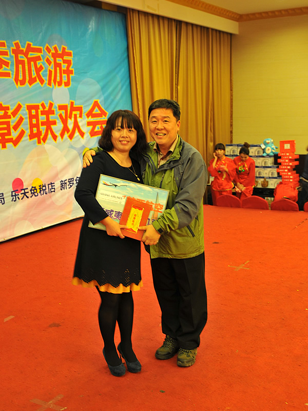 韓國旅游發展局社長樸正夏、韓亞航空支店長金珍、韓國欣欣旅行社總經理金龍渙、韓國新羅免稅店所長金東元、韓國樂天免稅店劉康妮、沈陽青旅董事長倪琛善慶祝表彰大會勝利召開
