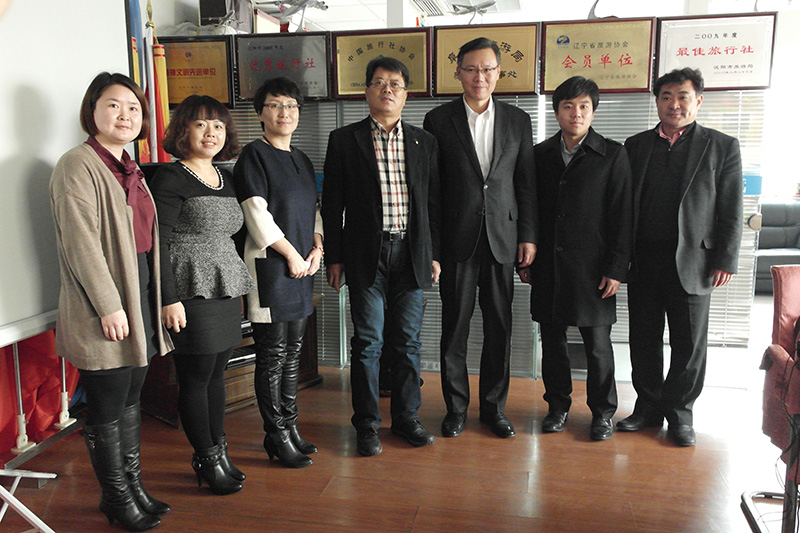 20131121,韓國旅游發展局沈陽支社、仁川市觀光支社、韓國大仁輪渡有限公司領導蒞臨沈陽青旅。仁川市觀光支社代表就仁川旅游景點進行推薦介紹,青旅領導與大仁輪渡公司代表研討大仁號合作的相關事宜,并交換意見。