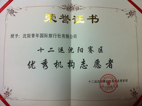 熱烈慶祝沈陽青年國際旅行社榮獲“第十二屆全運會沈陽賽區優秀機構志愿者”稱號。在全運會期間,沈陽青旅全力配合大會的召開,出色完成了機構志愿者工作,為全運會順利舉行貢獻我們的一份力量。