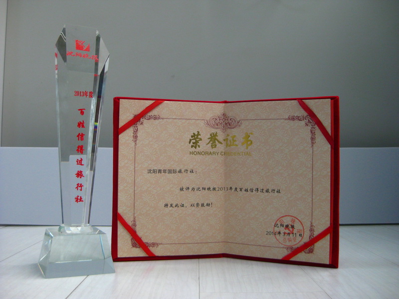 熱烈祝賀沈陽青旅被沈陽晚報授予2013年度百姓信得過旅行社稱號。