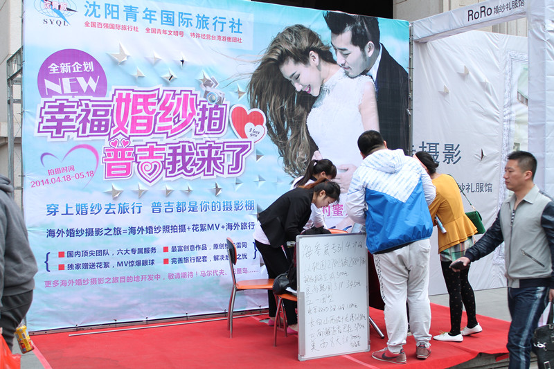 2014年4月25日,由遼寧廣播電視臺綜合頻道廣播主辦的“2014家有喜事——幸福來敲門”婚慶文化博覽會在沈陽中街商業城隆重舉行。沈陽青年國際旅行社副總經理童帥為開幕式致詞。青旅獨家推出的普吉島婚拍及五一游系列產品受到了廣大游客的熱切關注,現場咨詢報名火爆。本次婚慶文化博覽會將為期舉行10天,于2014年5月4日落下帷幕。