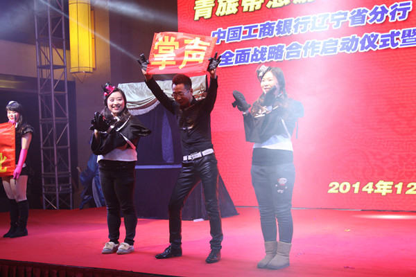 本次的晚會共分為兩個部分:中國工商銀行遼寧分行與沈陽青年國際旅行社全面戰略合作儀式,以及沈陽青旅2015年年會。啟動儀式部分由身為遼寧廣播電臺著名主持人、同時也是我社形象代言人的大兵主持,伴隨著激情的水鼓舞和熱鬧的舞獅表演,在一開始就為晚會掀起了小小的高潮。各方領導分別講話后,共推啟動球、共飲賀酒,為啟動儀式畫上了圓滿的句號。