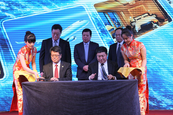 中國工商銀行楊子峰行長(右)與沈陽青旅董事長倪琛善先生(左)正式簽署全面戰略合作協議
