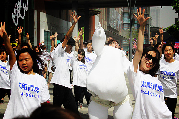 2015年4月26日下午,由沈陽青旅獨家策劃的周末街頭快閃活動在沈陽中街大悅城門前廣場火爆舉行,主持人大兵從天而降更是引爆了現場本就熱烈的氣氛,活動現場熱鬧非凡,給每一位經過中街的行人留下了深刻的印象。