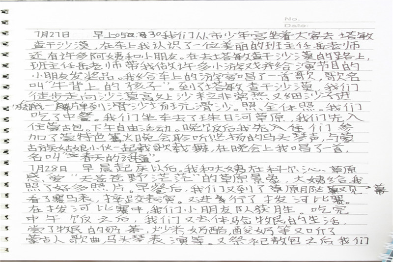 早統一集合后,赴通遼塔敏查干沙漠,體驗了刺激的滑沙活動,在廣袤的沙漠內進行了寫生繪畫、沙漠內舉行沙漠足球、拔河比賽、沙漠徒步走五公里等精彩的活動,并評出優秀徒步隊員。短暫而又舒適的休息后赴科爾沁草原腹地——珠日河草原,熱情好客的蒙古族同胞們為大家展現了草原馬隊迎賓、科爾沁草原迎賓禮、敬下馬酒,晚上宿蒙古包,真真切切體驗了一把游牧民族的生活。