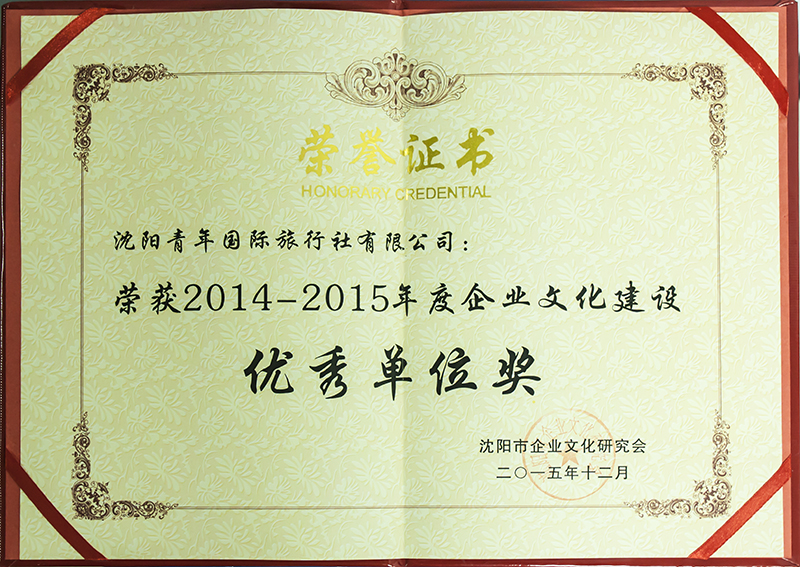 沈陽(yáng)青年國(guó)際旅行社獲得企業(yè)文化建設(shè)優(yōu)秀單位獎(jiǎng)