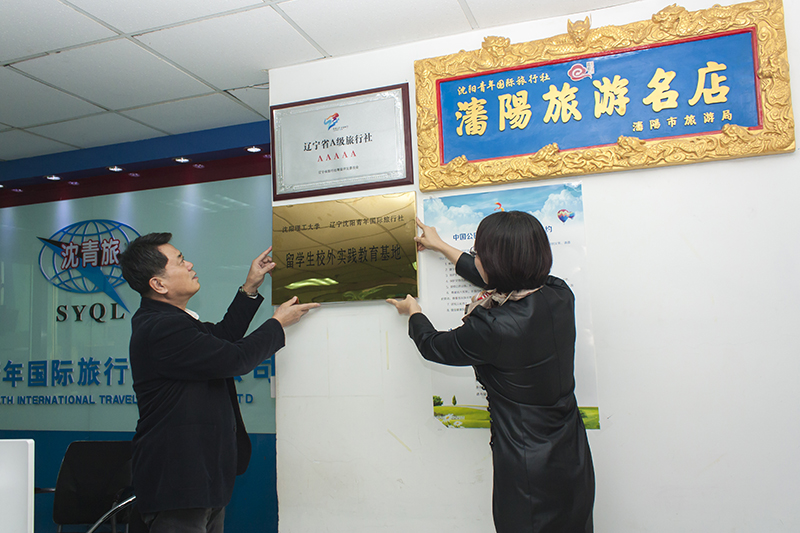 2016年1月5日,為貫徹國家《教育發展綱要》,實現“產、學、研”相結合的教學模式,全面培養 漢語言文學 專業應用型人才,沈陽理工大學國際教育學院與沈陽青年國際旅行社聯合建立“留學生校外實踐教育基地”,讓更多的外國留學生有實踐學習的機會,今后在我社的前臺及營業部會有更多的外國留學生為大家講解旅游線路!