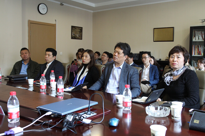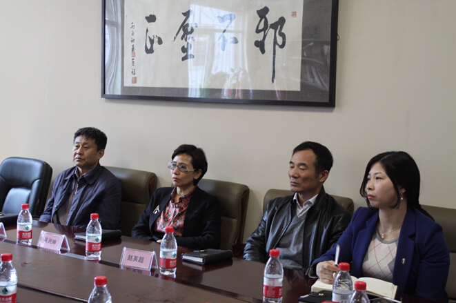 吳興坤副局長(左二)、趙英超秘書長(右二)、李雪鵬處長(左一)聽取匯報
