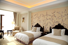 | 遼寧碧湖溫泉度假村是擁有五星級(jí)標(biāo)準(zhǔn)的度假村式酒店,全歐式裝修風(fēng)格,富麗堂皇。擁有行政套房、標(biāo)準(zhǔn)套房、雙人標(biāo)準(zhǔn)間、大床房等多種房型供不同需求選擇。房間全部地毯、空調(diào)、獨(dú)立衛(wèi)生間、24小時(shí)熱水供應(yīng)。 | ![]() |